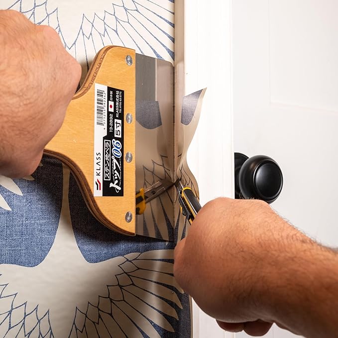 Crafted from high-quality Japanese stainless steel, the KLASS Trim Guide features a rust resistant blade is securely set into a lightweight, waterproofed wooden handle. The trim guide is easy to clean, ensuring long-lasting performance in any environment. Designed for precision applications, the angled hand grip reduces wrist fatigue, while the pointed blade tip enables tight corner cuts with ease. This versatile tool is perfectly sized for trimming excess wallpaper around doors, windows, millwork, baseboards, and more.